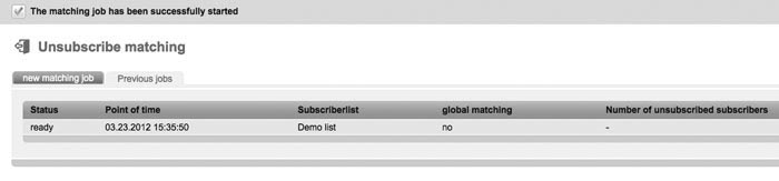 Now, Media Company starts the matching and, after having finished, it informs you about the number of the deleted subscribers. |
