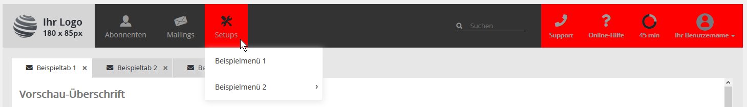 Die Bedienelemente der Vorschau dienen als optisches Beispiel, ohne dass sie eine Funktion ausführen. Sie können gefahrlos die optische Wirkung verschiedener Einstellungen testen. Erst mit Klick auf Speichern werden die Einstellungen in Ihren Account übernommen.