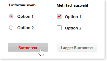 Akzentfarbe 1: Markierung in Einfach- und Mehrfachauswahl sowie Fokusfarbe des Buttontextes
